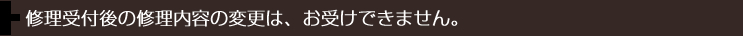 ・中国工場の大型連休・修理内容に不備があり再修理・その他の事情により納期が予定より大幅に遅れる場合があります。